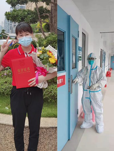 4月24日,她们所在的病区终于清零,顺利完成任务平安归来啦!现在即将结束居家隔离,又要准备投入到繁忙的医疗工作中来。“女子本弱”,韦鲜丽和黄雪曼是我院无数女性白衣天使中的一员,有她们温柔、耐心呵护患者的一面。但她们也是与新冠肺炎作斗争的女性医护人员的缩影,她们的工作热情、强度、完成度丝毫不弱于男同事,她们用女性独特的方式在抗疫一线形成了一道靓丽的风景线。