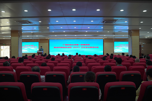 为规范开展药物临床试验,推进医院药物临床试验机构(简称GCP机构)备案管理工作,4月14日下午,广西科技大学第一附属医院在医院学术报告厅召开推进药物临床试验(GCP)工作会议暨培训会。院领导班子、全院中层干部、护士长共计100多人参加了学习培训。会议由副院长张施明主持。