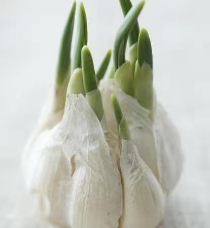 大蒜:发芽后使得一些抗氧化物质含量升高,维生素C和胡萝卜素含量增多,同样可以正常食用。 但是大蒜变色、发霉的大蒜就不能食用了。