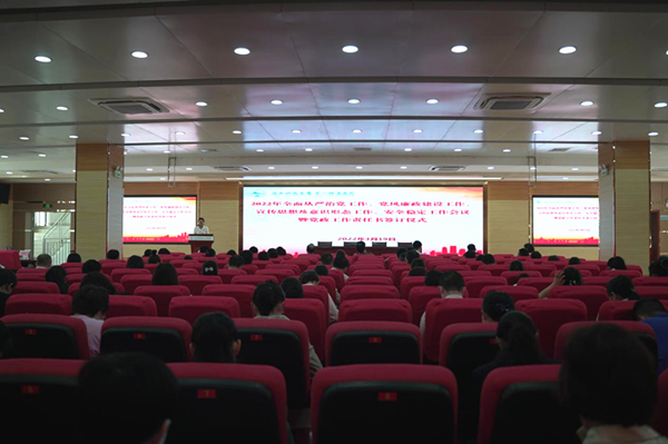 庞晓红书记在会议上作名为《吹响冲锋的号角 踏上再创的征程》讲话,他强调,思想就是力量,感悟思想伟力、自觉用党的创新理论武装全党的政治自觉,是凝聚合力、强根铸魂之基本。2021年以来,学院(医院)坚定不移深化全面从严治党,稳扎稳打推进党史学习教育,党建引领各项工作发展成效明显:越来越多患者选择和信赖医院,诊疗总量提升明显。医疗技术再上新台阶,胸痛中心通过国家认证上升为标准版,医院获“中国神经变性疾病优秀联盟单位”荣誉称号,为当年唯一被授予此殊荣的单位。为构建和谐医患关系,学院(医院)制定依法执业自查制度和黑名单管理制度,出台医疗作风建设专项整治行动方案,这一先进做法和经验得到自治区卫健委的通报表扬。在疫情防控方面,派出包括1名副职院领导在内共计300多人医疗队,支援各市疫情防控工作,全年完成核酸检测超过13万人次,完成群众疫苗接种超过27万剂次,圆满完成上级下达的疫情防控任务。