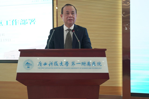 覃天院长指出,2022年医院(学院)党政工作的总体目标是推动新时代党建高质量发展,全力保障群众就医需求,进一步加强学科内涵建设,坚决打造特色品牌,力争实现综合实力大幅跃升。他从11个方面布置了下一阶段重点工作:一是要加强政治建设、落实党的全面领导,推进医院(学院)高质量发展;二是突出思想建设,加强理论学习,推进党史学习教育常态化开展;三是加强队伍建设,推进干部管理,激活医院(学院)高质量发展“主引擎”;四是落实安全管理,聚焦急难愁盼,推进依法治院工作;五是持续抓好常态化疫情防控;六是启动三级综合医院评审工作;七是强化医疗质量与安全管理;八是加强教育教学水平;九是全面促进学生成长成才;十是增强科研创新能力;十一是加强内涵建设,推进实施精细化管理。