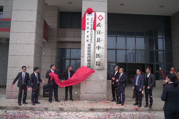 3月1日,广西科技大学第一附属医院与武宣县中医院举行紧密型医疗联合体签约及揭牌仪式。武宣县委常委、统战部部长、副县长覃笑龙,广西科技大学第一附属医院党委书记庞晓红、党委副书记、院长覃天、副院长李俊,武宣县卫健局党组书记、局长熊杨,武宣县中医院党委书记吴忠顺等领导出席签约及揭牌仪式,武宣县中医院院长李康主持仪式。