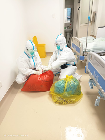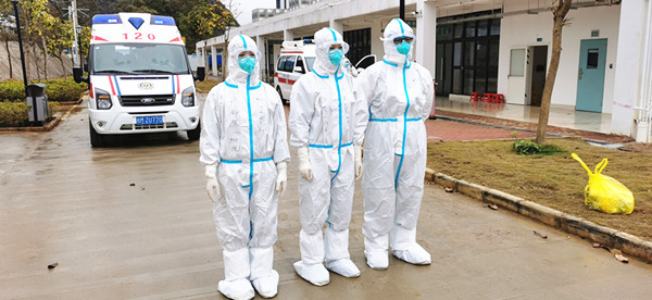2月17日,通过各方医务人员的共同努力,靖西市公共卫生应急救治中心共有8例阳性病例出院,均由我院救治团队乐文俊、甘良燕和李杏叶全程护送。医护人员们跟随三辆负压救护车将出院病例送到右江民族医学院附属医院百东院区康复病区,接受进一步的基础病治疗和健康监测。交接完毕后,护送三人组更换隔离衣、对车辆内外进行严格消杀,紧接着立刻回到靖西市公共卫生应急救治中心继续投入新的工作。