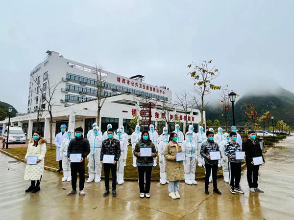 百色疫情暴发以来,广西科技大学第一附属医院积极响应,第一时间派出两批援百色抗疫医疗队。2月15日,按照自治区新冠肺炎疫情防控指挥部指示,我院又派出整建制援靖西医疗管理救治团队驰援百色,接管靖西市公共卫生应急救治中心病区,开展病区管理和新冠肺炎确诊病例救治等工作,助力百色抗疫取得阶段性胜利!