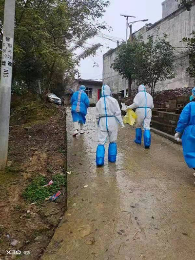 党员蒋姣华、覃雪梅与志愿者入户采样