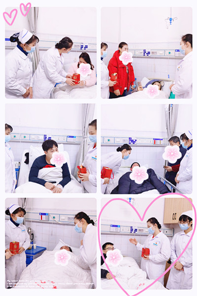 除夕夜上午,陈瑞主任和罗春妮护士长为不能回家过年的患者及家属送上福果,祝病人新的一年幸福安康,小小礼物,深深的关爱,让患者感受到了安全、尊重的同时,也把满满的爱与祝福传递给每一位在院患者,让他们感受到家的温暖!