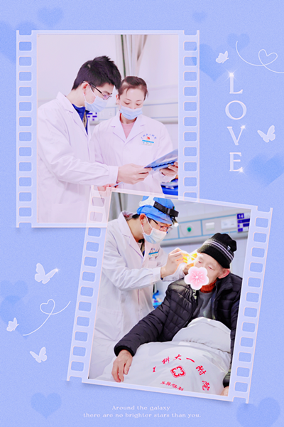 91岁的赵阿公,因右侧听力下降3天余入院,入院后完善相关检查,改善内听道循环、活血化瘀等对症支持治疗。赵阿公身体硬朗,精神矍铄,是位和蔼可亲的老爷爷,同时他的外孙女也是一位医生。值班的陈瑞主任带领陈坚医生认真细致的评估阿公听力恢复情况,并且对阿公说:您守护医生,我们守护您!