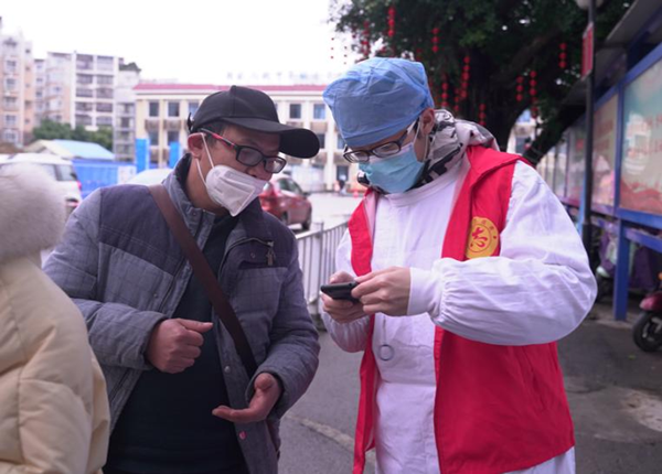 进行核酸检测采样之前,要先进行“健康码”、“行程码”等查询并填写流行病学调查表,排队的人群里有老年人,有妈妈带着两个孩子,怎样用手机扫码、怎样填表?初春的天气,仍然寒冷,只有有效地指引和帮助,才能尽量缩短群众等候的时间。