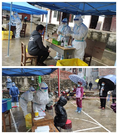 医护人员村委为村民们核酸采集