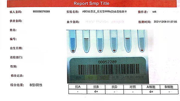 我院全自动血型分析仪检测B型RhD阴性血型图片