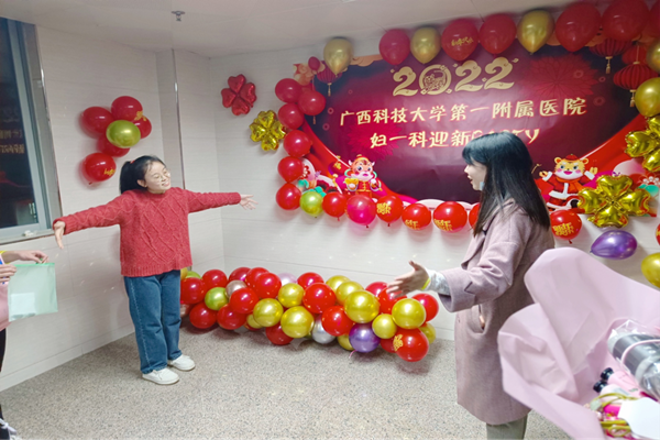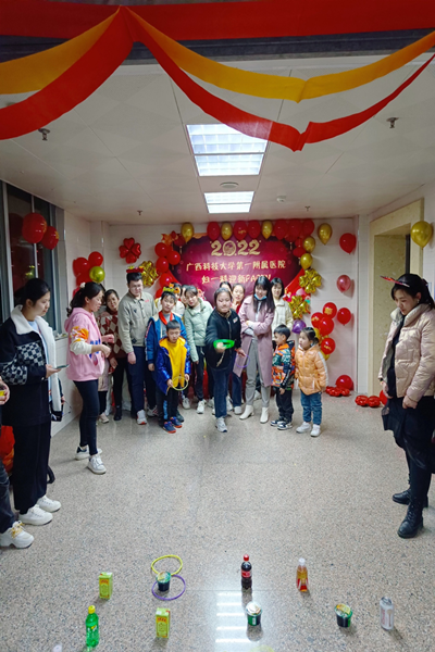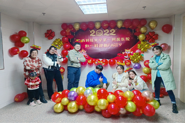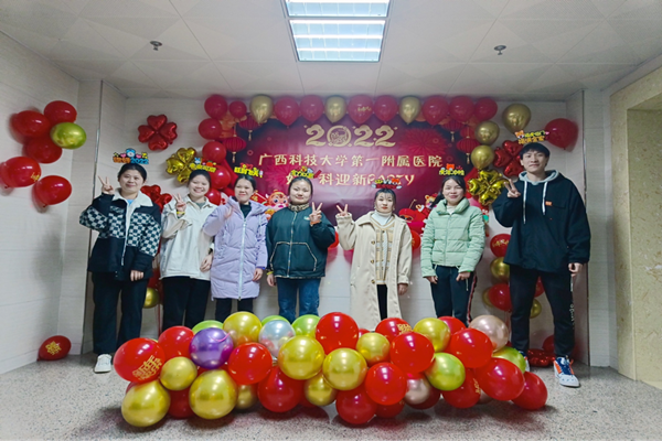 1月14日,广西科技大学第一附属医院妇一科举行迎新派对,共迎新春。妇一科医护人员早早地准备好丰盛的食物及精美的礼品,住院医师、进修医生、全科转岗医生、医护实习学生等和带教老师共同参与活动。病区装扮得五彩缤纷,弥漫着温馨祥和的氛围。下午17时许,大家共聚一堂,现场充满了欢声笑语,喜悦洋溢在大家的脸上。