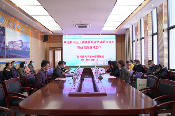 为贯彻落实《广西壮族自治区人民政府办公厅关于印发广西加快医学教育创新发展实施方案的通知》等文件精神,加强住培工作管理,12月21日,自治区卫健委派评估调研专家组潘冰冰、张艳玲、农美丹等3人到广西科技大学第一附属医院,开展2021年第四季度全区住院医师规范化培训评估调研工作。医院副院长张施明、住培科等职能部门和相关专业基地教学管理人员陪同调研。