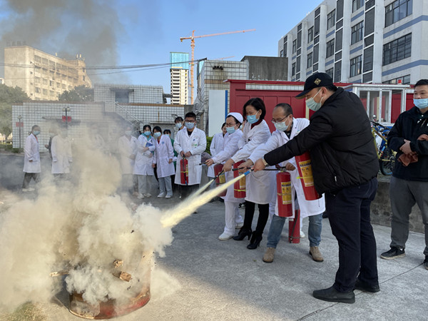 随后,消防安全保卫科还组织医务人员、后勤人员等到医院空地进行灭火器灭火培训和演练。