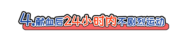 剧烈运动及通宵娱乐建议在24小时后,献血手臂在24小时之内不提重物,以免皮下出血。