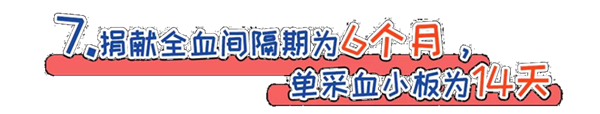 捐献全血的间隔期为6个月;捐献机采血小板的间隔期为14天,一年不得超过24次。捐献全血后,捐献单采血小板的间隔期应≥3个月;捐献单采血小板后,捐献全血的间隔期应≥1个月。