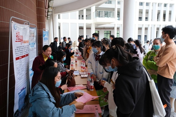 11月11日,得到广西科技大学医学部的大力支持,广西科技大学第一临床医学院(第一附属医院)拿出多个优质岗位参加了医学部举行的大型专场双选会。本次双选会,我院签约人数共计478人次,签约率近70%,取得了良好的社会效益。