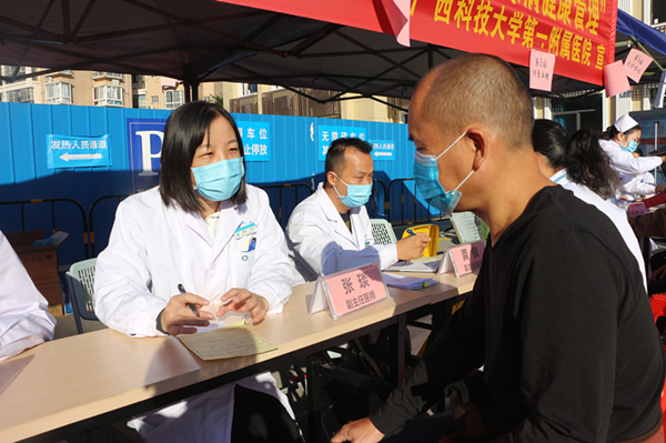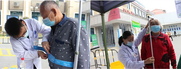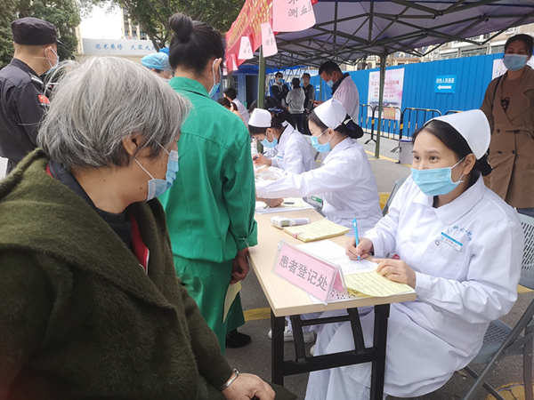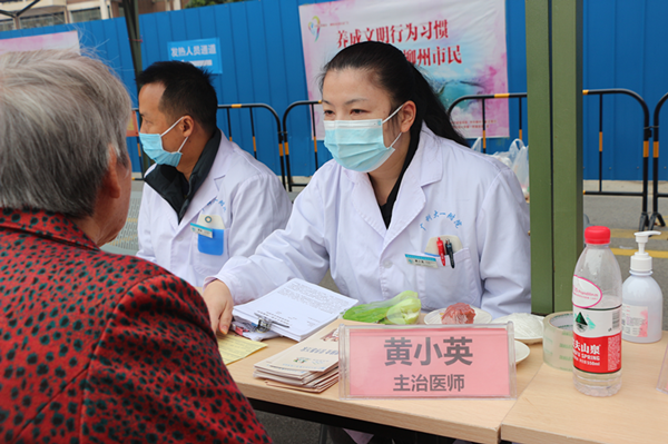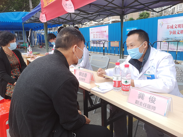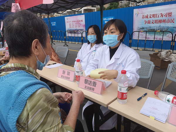 义诊现场非常热闹,市民朋友们在遵守疫情防控的前提下,与家人共同前来咨询就诊