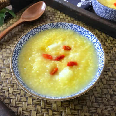 做法:将干山药、小米放入水中,熬煮成粥,当主食服用。