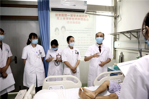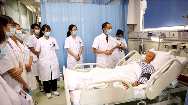 张施明带着广西科大一附院一拨实习生们进入CCU病房,病床上的病人状态看着都挺好,跟刚入院时的状态是两个极端。