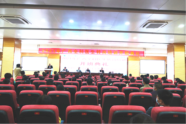 10月14日上午,广西科技大学第一附属医院在学术报告厅举行2021年广西全科医生转岗培训开班典礼。广西科技大学继续教育与培训学院党委书记彭勇、广西科技大学医学部党委副书记、常务副主任孙文忠、广西科技大学第一附属医院党委书记庞晓红、广西科技大学第一附属医院党委副书记、院长覃天、广西科技大学第一附属副院长闭雄杰及全科医生转岗培训管理人员、授课教师、全体学员共100余人参加了典礼。开班典礼由广西科技大学第一附属闭雄杰副院长主持。