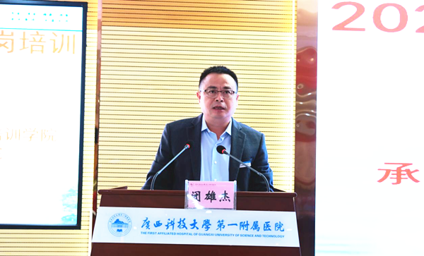 最后,副院长闭雄杰表示,全科医生转岗培训是国家做出的重大决策。广西壮族自治区卫生健康委员会为了贯彻落实《健康中国2030规划纲要》和《国务院办公厅关于改革完善全科医生培养与使用激励机制的意见》精神,2021年全区全科医生转岗培训共383人,其中85人在我校、我院参加培训。希望学员们能克服困难,珍惜培训机会,学有所成,学有所获,成为一名优秀的全科医生!