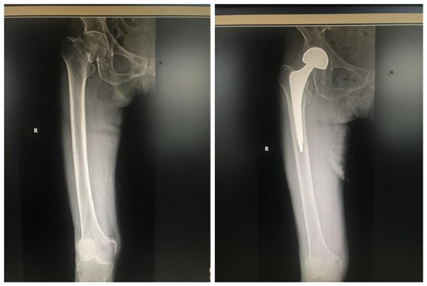 83岁老太太右股骨颈骨折术前术后影像资料