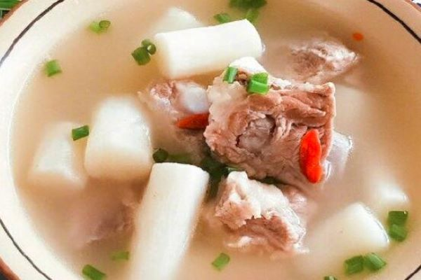 (2)山药排骨补气汤材料:猪排骨500克、山药1000克、红枣8粒、党参15克、黄芪20克、姜1块、葱白1根、料酒1汤勺、盐。做法:1、排骨切小节洗净后用凉水泡4小时以上,其间换几次水,让血水充分泡出来,再焯水沥干备用,党参、红枣、黄芪分别洗净备用。 2、锅放少许油加入姜片,葱节炒出香味再放入排骨翻炒出油,加入开水、料酒、党参、黄芪大火烧开倒入砂锅小火炖40分钟。3、山药去皮洗净切段加入排骨里再放入红枣,中火炖30分钟加入少许盐。功效:健脾补气,强壮身体适宜人群:脾胃气虚见纳差,疲倦乏力,大便溏者。