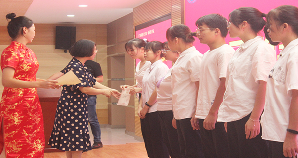学工办主任、团委书记唐艳红为十佳宿舍长颁发荣誉证书