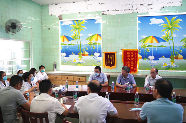 随后,调研组一行来到了我院康复医学科病区。在听取科室情况介绍后,杨晓波副校长指出,康复医学对于患者的生命质量具有重要意义,也是医院未来发展的一个重要方向,因此,在学科建设方面要舍得投入技术力量,尤其是在人才引进方面政策要灵活。