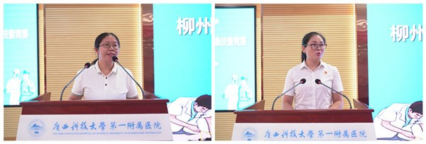 下午五点,竞赛闭幕式在医院学术报告厅举行。柳北区卫生健康局党组书记、局长、区中医药管理局局长潘新胜,广西科技大学第一附属医院院长、党委副书记覃天等参加闭幕式。首先,由潘慧玲和陈新作为评委代表,做竞赛点评,指出参赛选手的不足并给予指导。接着,由主持人宣布竞赛结果、获奖名单,二等奖、三等奖各三支队伍,雅儒社区卫生服务中心、宏力社区卫生服务中心获得一等奖。然后,由领导们分别为获奖参赛队和获奖选手颁奖。