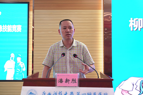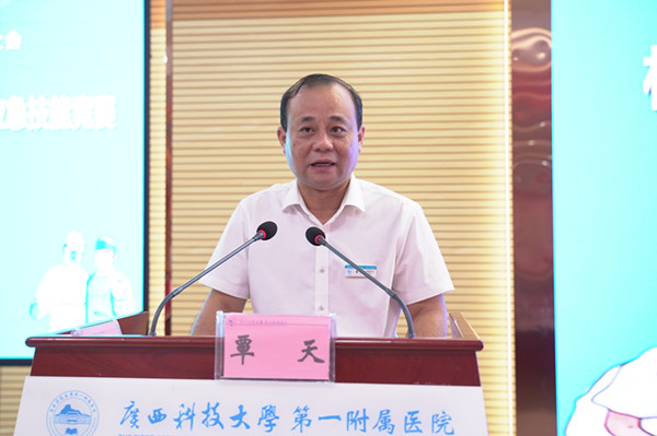 首先,由广西科技大学第一附属医院院长、党委副书记覃天致词。他对各位领导及基层医疗卫生机构长期以来关心和支持我院发展,表示诚挚的敬意和衷心地感谢!他说,医院分别于2019年、2020年成功承办柳州市基层医疗卫生机构卫生应急技能竞赛、柳州市柳北区基层医疗卫生机构新冠肺炎防护及核酸检测标本采集技能竞赛,并对各基层医疗卫生机构人员进行竞赛前的培训,取得良好效果与高度评价,进一步提高了各基层医疗卫生机构人员的卫生应急能力水平。本次竞赛我院本着公平、公正、公开、客观的原则,做好竞赛评比工作,保质保量完成竞赛各项任务。