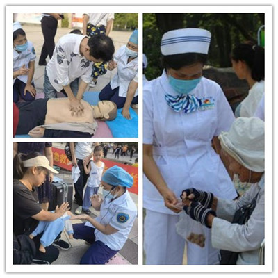 活动现场,专家们针对常见病、慢性病等如慢性阻塞性肺疾病及哮喘的预防及管理,脑卒中后遗症的管理,消化疾病及心血管疾病治疗、预防及管理,骨科及耳鼻喉常见疾病预防和护理,乳腺癌防治及围产期保健等,为广大市民提供咨询及指导;糖尿病医护专家为群众进行免费血糖测量、耐心解答群众提出的健康问题、对现场测量血糖值较高的患者给予饮食、运动、日常血糖监测、安全用药指导;同时,还有康复、营养专家现场提供疾病康复指导和营养指导;急救专家团队现场演示了心肺复苏及海姆立克手法,还手把手教会市民掌握心肺复苏方法和海姆立克手法。同时在活动现场还向市民发放了各种疾病防治、新冠疫情防控知识、疫苗接种知识等宣传手册,积极向群众普及健康生活方式、疫情防控等方面知识。