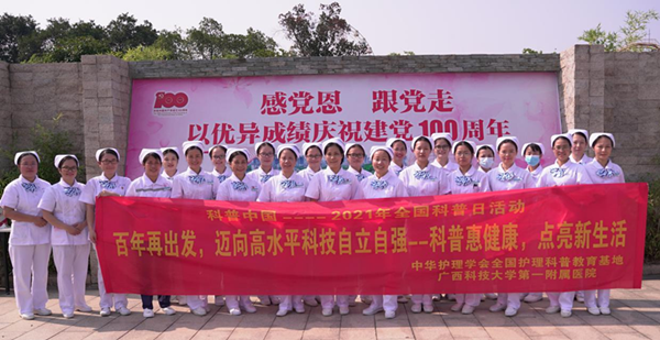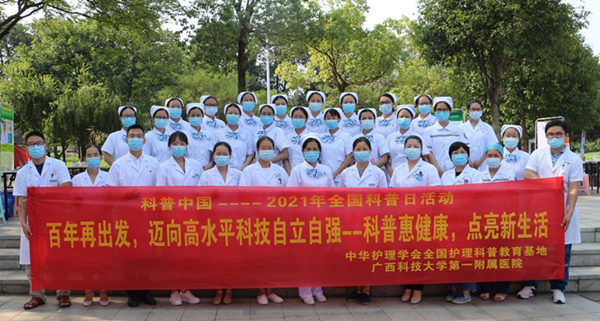 根据《中国科协等13部门关于举办2021年全国科普日活动的通知》(科协发普字〔2021)28号)要求,为大力普及宣传健康知识,助推全民科学素质全面提升,广西科技大学第一附属医院(第一临床医学院)护理部认真落实中华护理学会2021年全国科普日活动文件要求,于9月11日上午组织30余名医疗及护理专家,在雀儿山公园开展主题为“百年再出发,迈向高水平科技自立自强”的大型义诊活动。