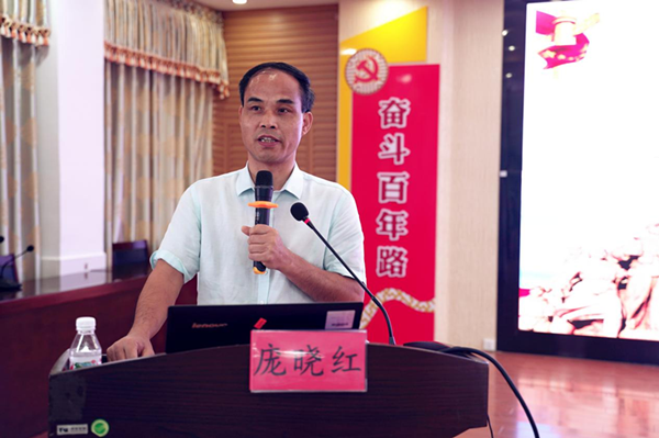 在授课大会上,我院习近平总书记“七一”重要讲话精神宣讲团成员庞晓红书记为忻城县人民医院全体职工进行宣讲,他阐释了习近平总书记“七一”重要讲话精神是马克思主义中国化的重大创新,马克思主义与我党每一个历史阶段的丰富结合,回答了中国共产党为什么“能”的历史命题。