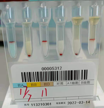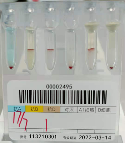 血型鉴定为A型Rh(D)阳性