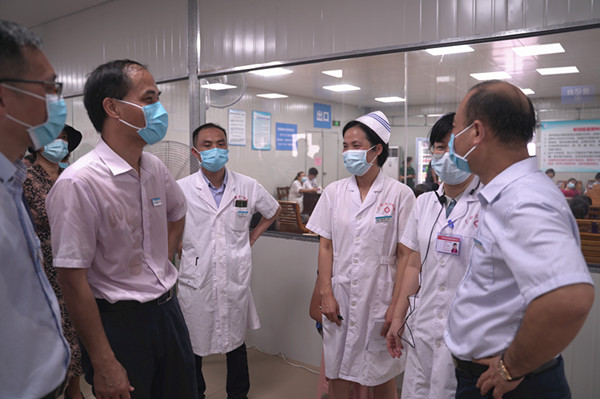 督导组在发热门诊检查