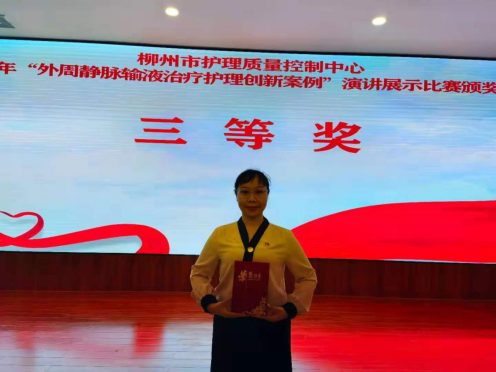 7月30日下午,广西科技大学第一附属医院(第一临床医学院)护理团队参加柳州市护理质量控制中心举办的“外周静脉治疗护理创新案例”演讲比赛,获得了三等奖。