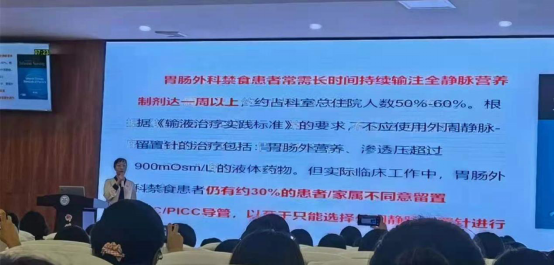 我院胃肠外科选送的项目《双管齐下,解“静”难题》内容新颖,使用双管留置针进行交替输液,可缩短药液刺激内皮细胞的时间,让血管有充分的休息及自我修复时间,避免药物对同一血管的长时间刺激,从而达到保护静脉的目的。