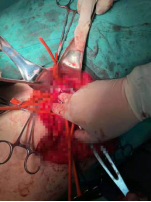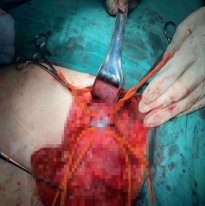 伤者很快经绿色通道进入手术室做手术准备,骨二科赵顺吕主任率领手术团队马上进入手术状态,在阻断正常血管手术过程中,赵主任发现稍有不慎,血管破裂口压迫物一松动,就会出现喷涌而出的活动性出血,每次一瞬间约100ml血就不见了,为了减少失血,赵主任干脆用左食指直接压在血管破裂口,同时继续用右手熟练的与助手们解剖正常血管,一直到完全阻断流向血管破裂口血液,松开时,赵主任的手指都已经麻木到活动困难,但他终于看见大腿根部如成人食指粗的股静脉,这时股静脉前壁纵向破裂长约2cm,由于术前、术中失血量大,血库告急,输血科义不容辞赶到血站领血,上演了一场多科联合抢救伤者大戏,经过3个小时的奋战,修补好破裂血管,股静脉复通很好,使患者转危为安,经后续治疗伤者伤腿已恢复正常。