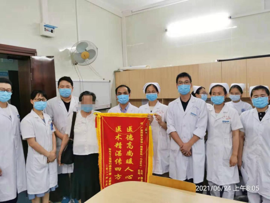 出院1周后农阿婆返院开药,她特地送来锦旗,对我们精湛的医疗技术、无微不至的护理关怀、为人民服务的精神称赞不已。同时她还一直在寻找当时为她伸出援助之手的好心人,希望能亲自感谢他。我们也希望能借助医院公众号平台帮她找到好心人,圆阿婆一个心愿!