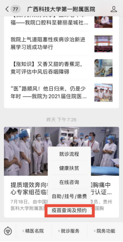 1、关注“广西科技大学第一附属医院”服务号