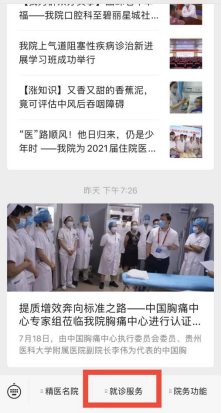 2、进入服务号后,点击下方的就诊服务
