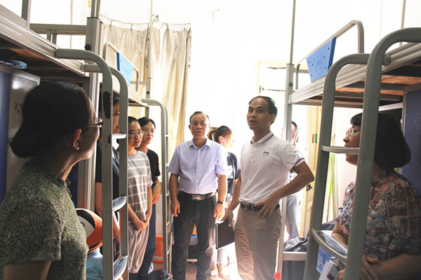 广西科技大学学生工作部(处)陈克文部(处)长,第一临床医学院(第一附属医院)党委书记庞晓红,第一临床医学院(第一附属医院)党委副书记、院长覃天等领导分别到搬迁现场看望学生。领导们走进学生宿舍与学生们亲切交谈,了解同学们对白沙校区各项设施设备的使用情况,关心慰问大家的生活起居并叮嘱注意暑期安全、往返家和学校途中注意个人防控等。领导还勉励同学们要尽快适应新的环境,把握住白沙校区跟第一临床医学院近在咫尺的优势,多学习专业知识、精准掌握各项技能,将来做一位合格的救死扶伤的白衣战士。