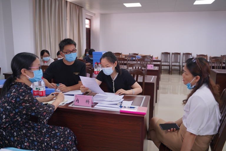专家组成员对培训基地、全科、内科等进行台账检查