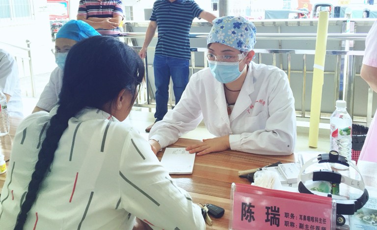 为了方便老百姓就近就医,小病和复诊都能少跑路,不管工作再忙,陈瑞都积极参与医院组织的各种乡镇义诊,定期到忻城县人民医院、武宣中医院、柳城大埔卫生院及柳北长塘卫生院等坐诊,不忘初心、牢记使命,热诚地对待每一位患者。跟病人问诊,陈瑞总是像认识很久的朋友一样多聊几句;小病人做手术,家人不能进手术间陪同,她抱着紧张的小病人坐在手术间门口,边讲故事边安抚;武宣来柳治疗鼻窦炎引起头痛的老人家,特意守着她去武宣县医院坐诊的时候去复诊,还带自家亲戚一起来看病,说这个医生好……急病人所急,医者仁心,用真情温暖病人。