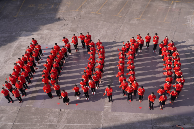 6月19日,祖国的天空万里无云,阳光普照大地,广西科技大学第一附属医院(第一临床医学院)党员干部意气风发、大步迈进,以饱满的精神面貌为党献歌!他们在地面摆出“100”字样,以实际行动迎接中国共产党成立100周年。