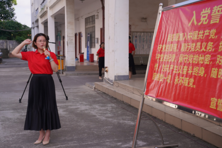 覃莲领誓,全体党员干部重温了入党誓词。