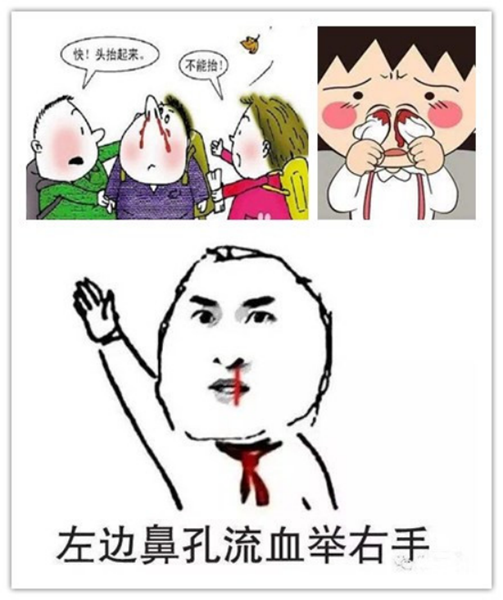 第三种方法:左边鼻孔流血举右手,此举毫无任何科学依据。