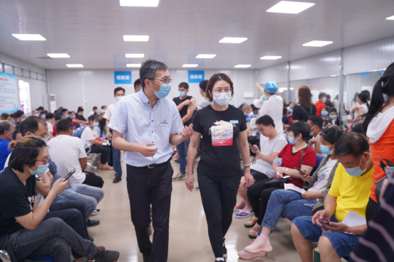尽管5月30日当天有将近5000人次前来医院,但接种工作一直有序进行,直至下午6时许,当天的疫苗接种工作顺利完成。近段时间以来,医院疫苗接种点前来咨询、接种的人数骤增。医院党委、领导班子高度重视,多措并举,协同相关科室以及街道、派出所及志愿者等多方力量推进接种工作,下一步医院将继续做好移动接种及推动接种点接种等疫情防控工作,践行“全心全意为人民服务”的宗旨,共同筑牢新冠疫情防线!(图文来源/宣传科 辜丽娜 审核/覃莲)