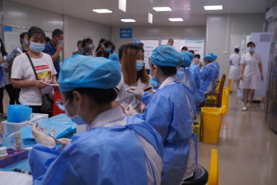 3440剂次!5月30日,广西科技大学第一附属医院大型新冠疫苗接种点开创了自疫苗开始接种以来,单日接种剂次最高纪录。当天至医院排队接种和进行咨询的居民接近5000人次,院党委、领导班子高度重视、提前部署,把服务群众、保障广大人民健康作为首要任务,由医院临床、医技及各职能科室、学生志愿者、周边街道、辖区派出所多单位、多部门联动,迅速组建了一支高效、专业的疫苗接种服务队伍,保障新冠疫苗接种工作的顺利推进。